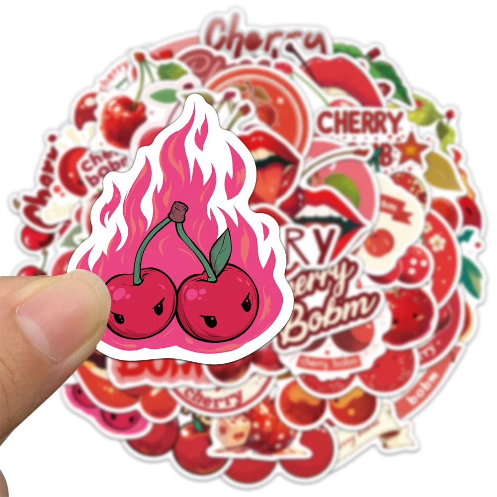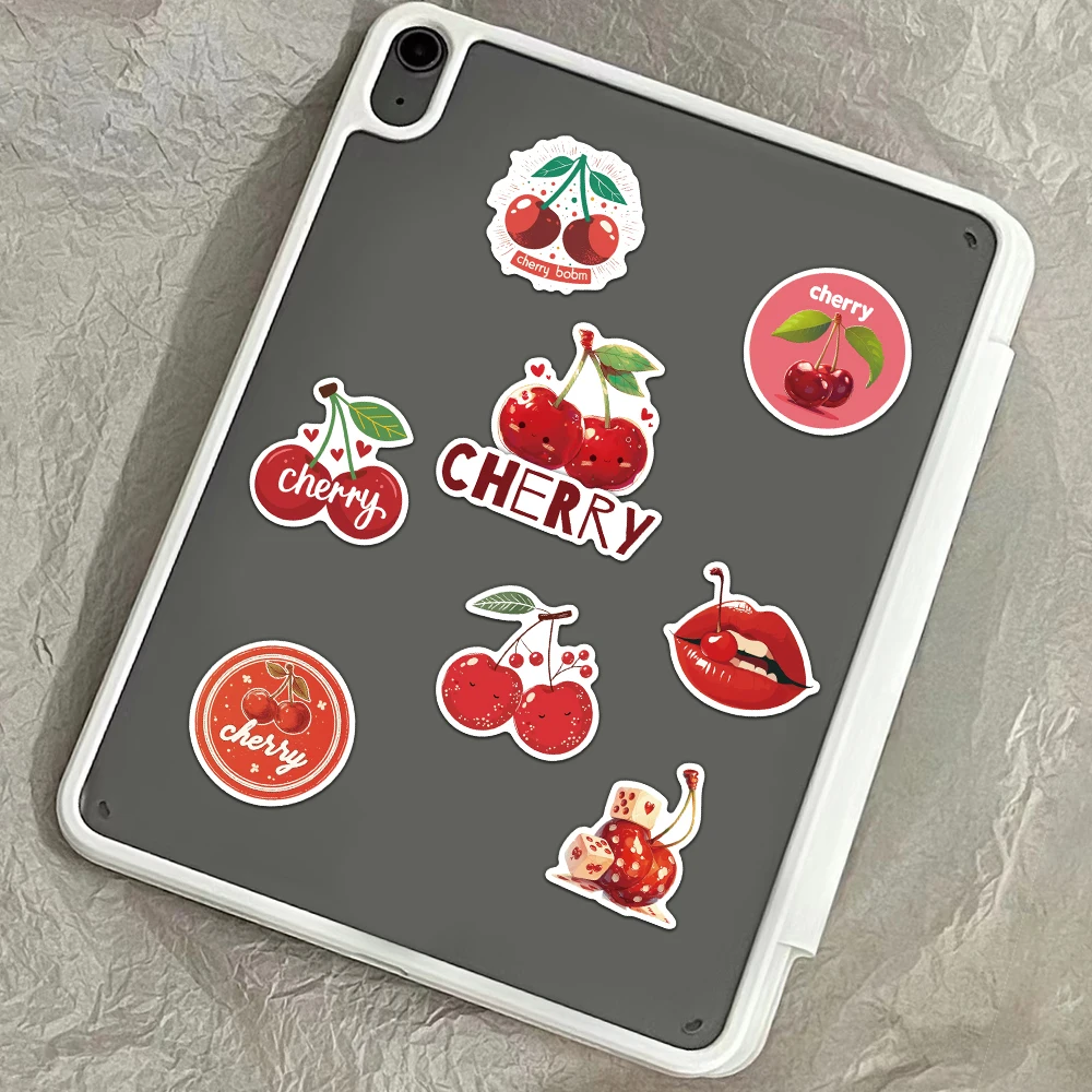 50PCS Fruit Cherry Sticker Red Cute Handheld Material Phone Case Laptop Luggage Waterproof Sticker