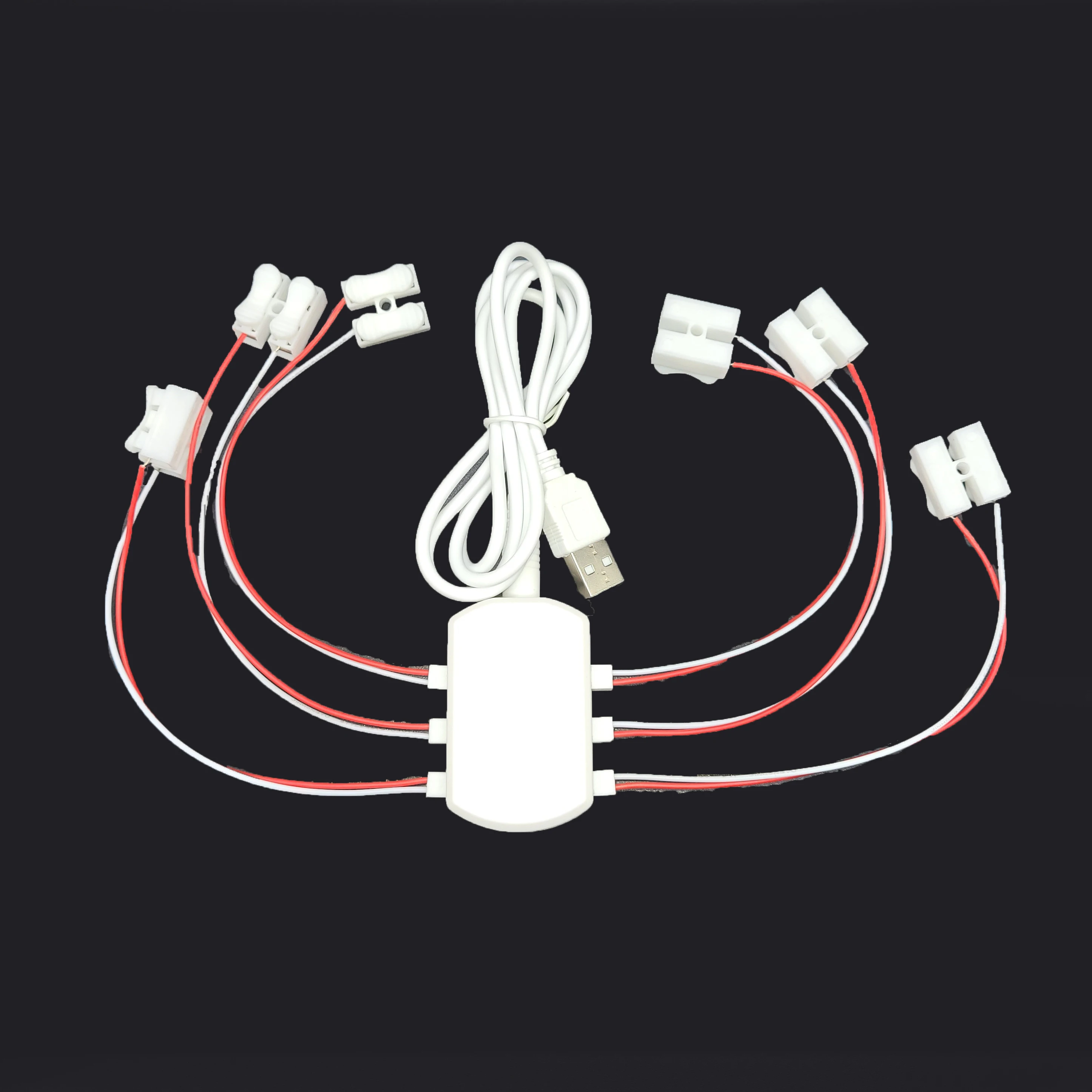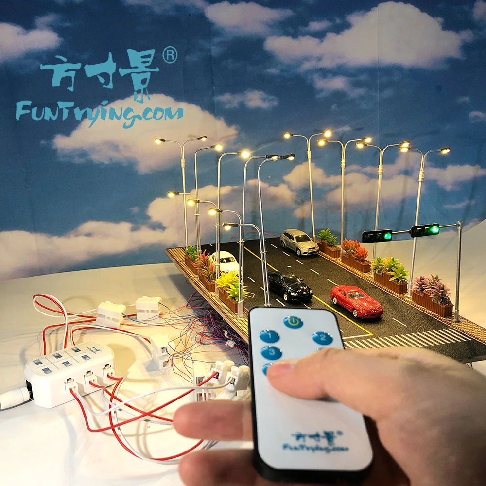 The power has 6 output ports and each port connects 3 Lights or LEDs, total 18 Lights or LEDs can be lighted up by this handy tool. Combine use with other FunTrying tools of ditribution to connect 60-70 lights or LEDs on your model layouts or dioramas.