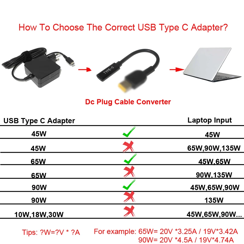 4, The output power of your type c PD adapter should be not lower than the needs of your laptop.