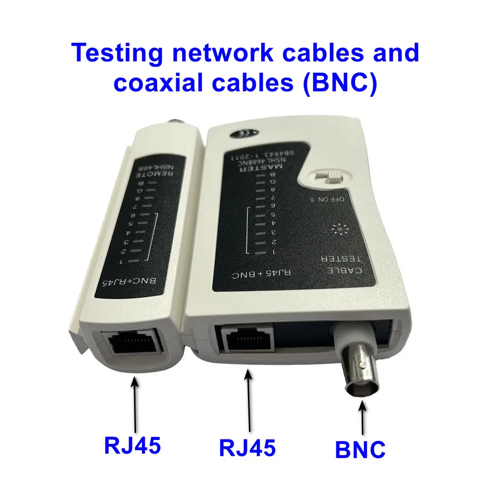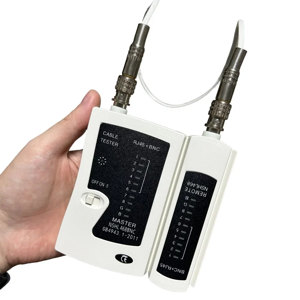 This testing instrument can simultaneously test Ethernet cables and BNC RF cables, serving multiple purposes.