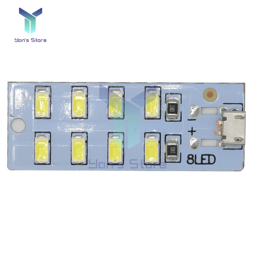 The light board adopts high-quality lamp beads, the substrate is aluminum substrate, and the power supply interface adopts MICRO USB, which is convenient for connecting to ordinary mobile phone chargers and mobile power supplies. The set working current is relatively large, the current value is 430mA7470mA, which can ensure sufficient brightness, and has a better heat dissipation design, so that the temperature is not too high. The matching current-limiting resistor is a 1210 large package non-ordinary LED night light single 0805 small package resistor.