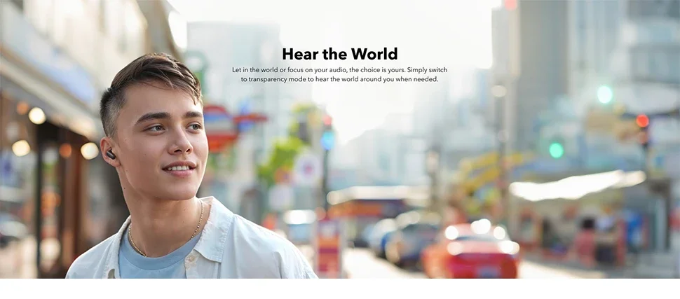 Simply switch to transparency mode to hear the world around you when needed.